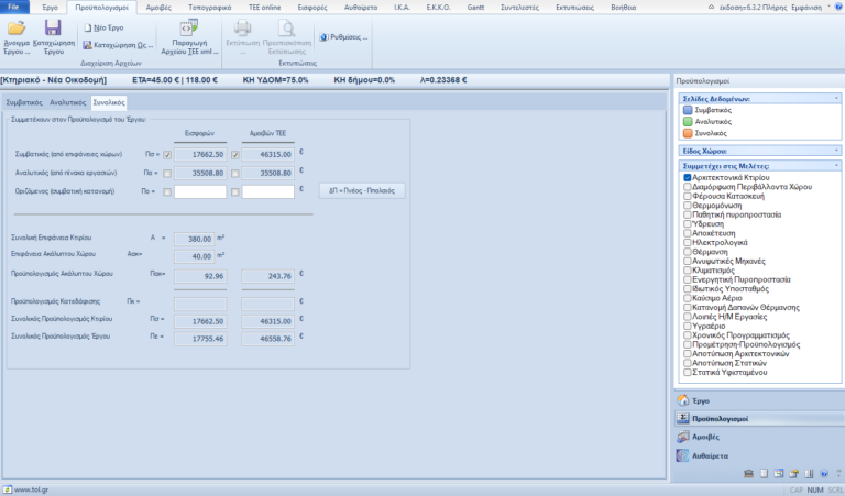 Ο συμβατικός προϋπολογισμός κτηρίων διαμορφώνεται σύμφωνα με την Υ.Α.81304/6083/6.12.89 και τις σχετικές εγκυκλίους, αλλά και με τις προσθήκες του ΤΕΕ.