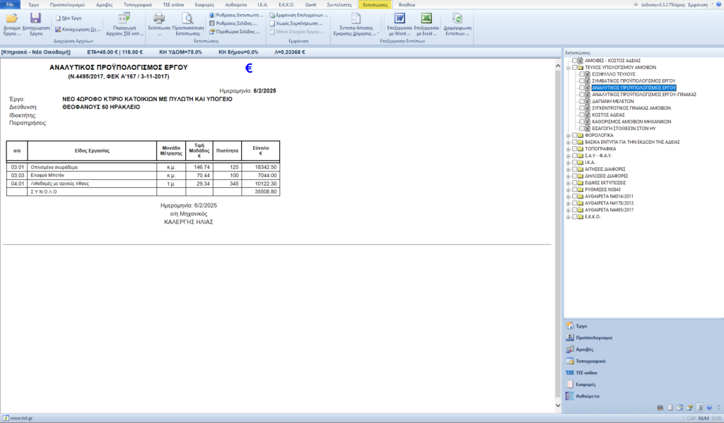 Διαμόρφωση Αναλυτικών Προϋπολογισμών Κτιριακών Έργων σύμφωνα με τα τιμολόγια ΑΤΟΕ.
