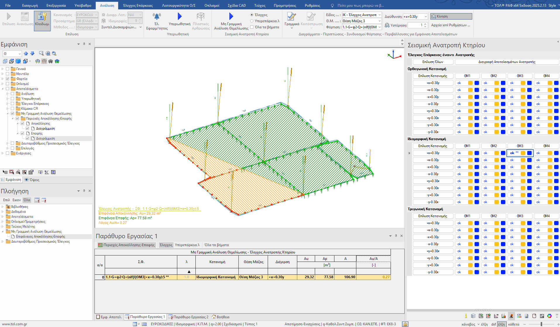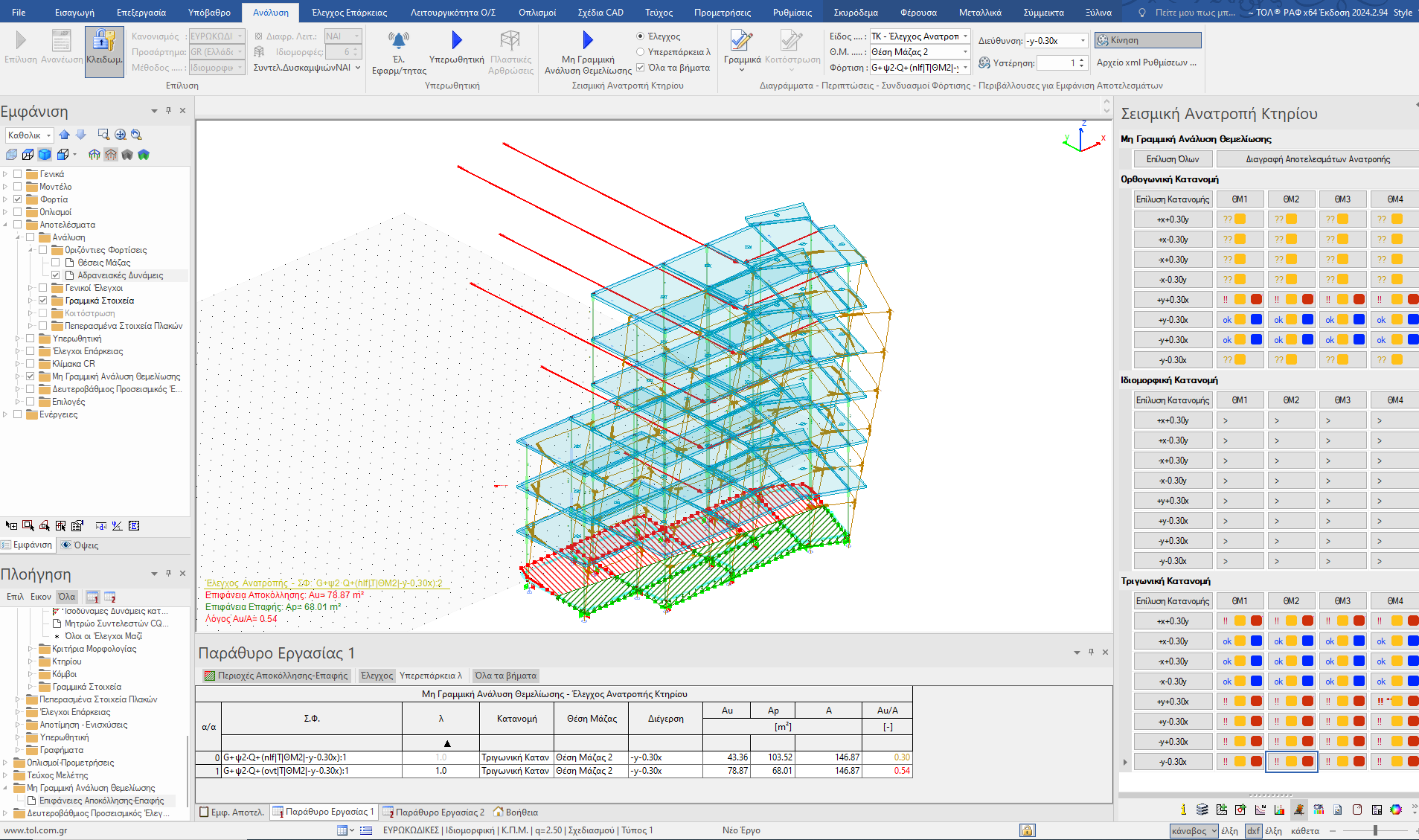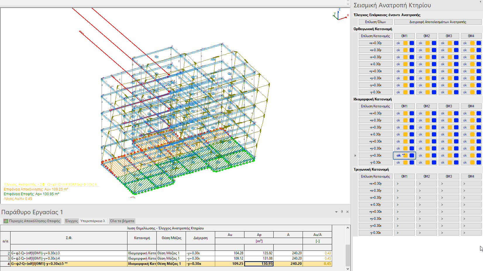 Στην συνέχεια αυτού το πρόγραμμα μπορεί να υπολογίσει, με πόσο περαιτέρω επαύξηση των σεισμικών φορτίων, θα συμβεί η ανατροπή του κτηρίου. Οι υπερεπάρκειες ‘λ’, μπορούν να υπολογισθούν για όσους συνδυασμούς σεισμικών δράσεων, έχει προκύψει επάρκεια κατά τον έλεγχο αποκόλλησης ή ανατροπής.