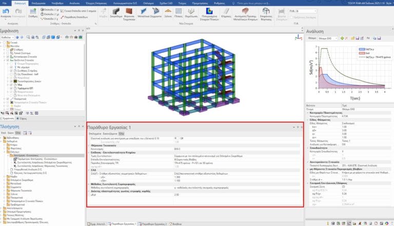 Η ελαστική δυναμική φασματική ανάλυση πραγματοποιείται στο ΡΑΦ για την αποτίμηση υφισταμένων κτηρίων σύμφωνα με τις προδιαγραφές του ΚΑΝ.ΕΠΕ. χωρίς κανένα περιορισμό στην εφαρμογή της.