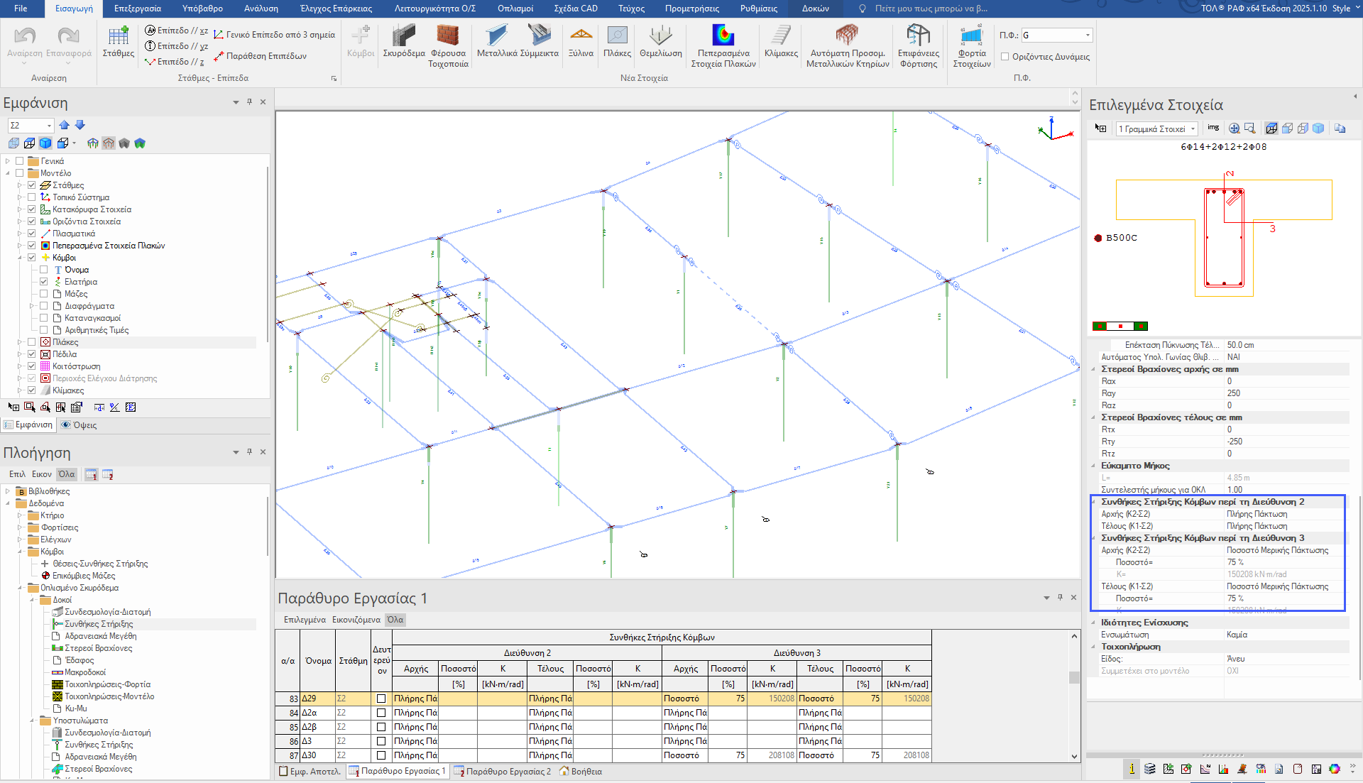 Οι ημιάκαμπτες συνδέσεις εισάγονται με απλό τρόπο, είτε σαν τιμή ελατηρίου, είτε σαν ποσοστό πάκτωσης του γραμμικού στοιχείου, με αυτόματη μετατροπή σε τιμή ελατηρίου.
