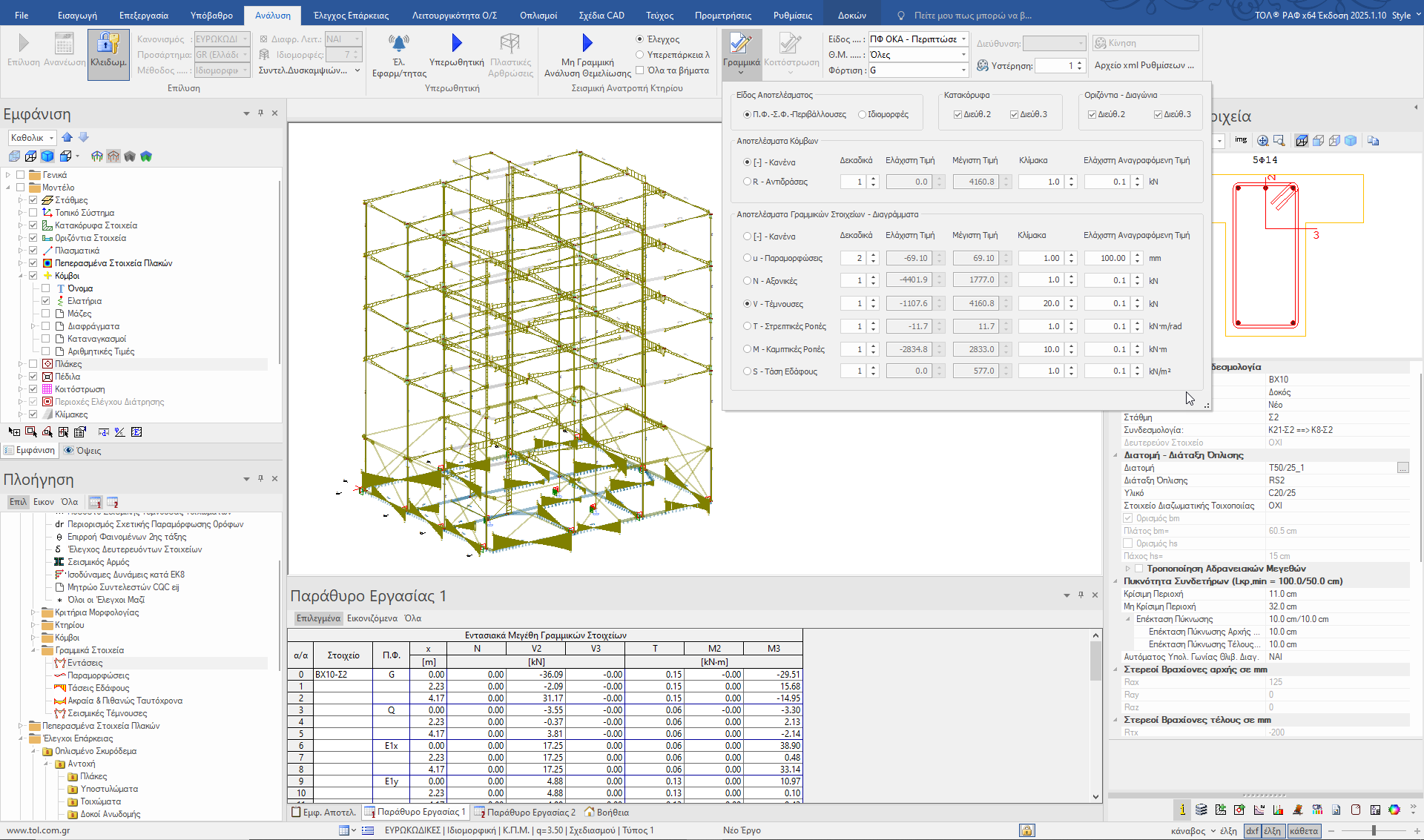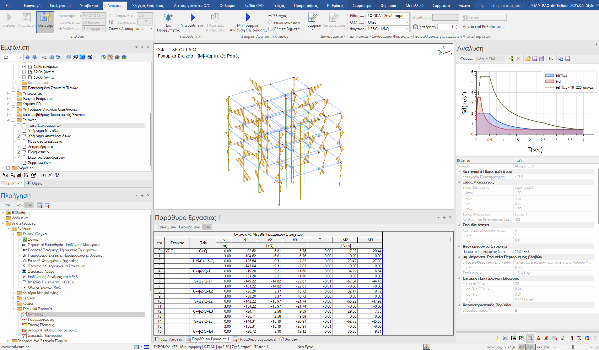 Επίσης, τα αποτελέσματα της ανάλυσης εμφανίζονται και σε μορφή πινάκων με αλληλεπίδρασή τους με την επιφάνεια σχεδίασης του ΡΑΦ, προσφέροντας έτσι τη βέλτιστη εποπτεία τους στο μηχανικό.