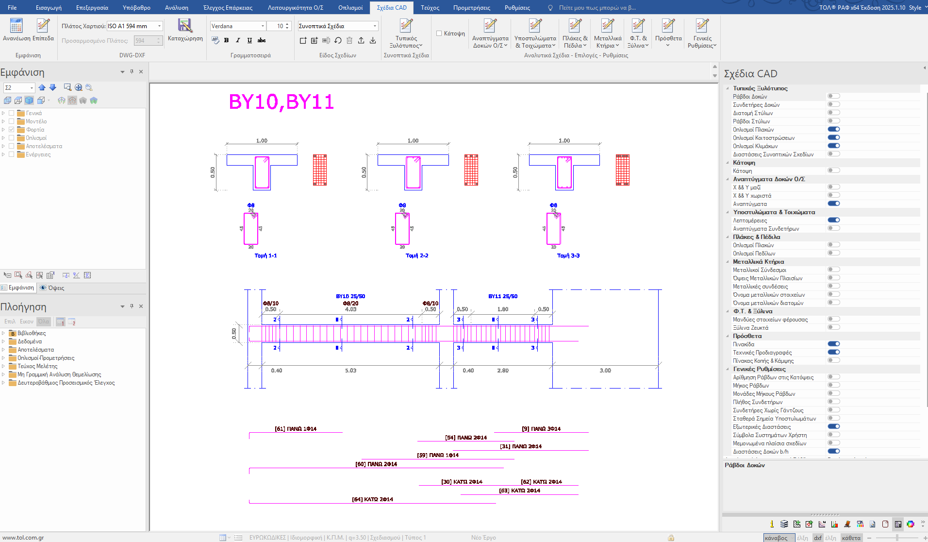 Όπως όλες οι διαδικασίες στο ΡΑΦ, έτσι και τα σχέδια οπλισμών είναι ποιοτικά, δημιουργούνται ταχύτατα και είναι πλήρως ελέγξιμα από τον μηχανικό.