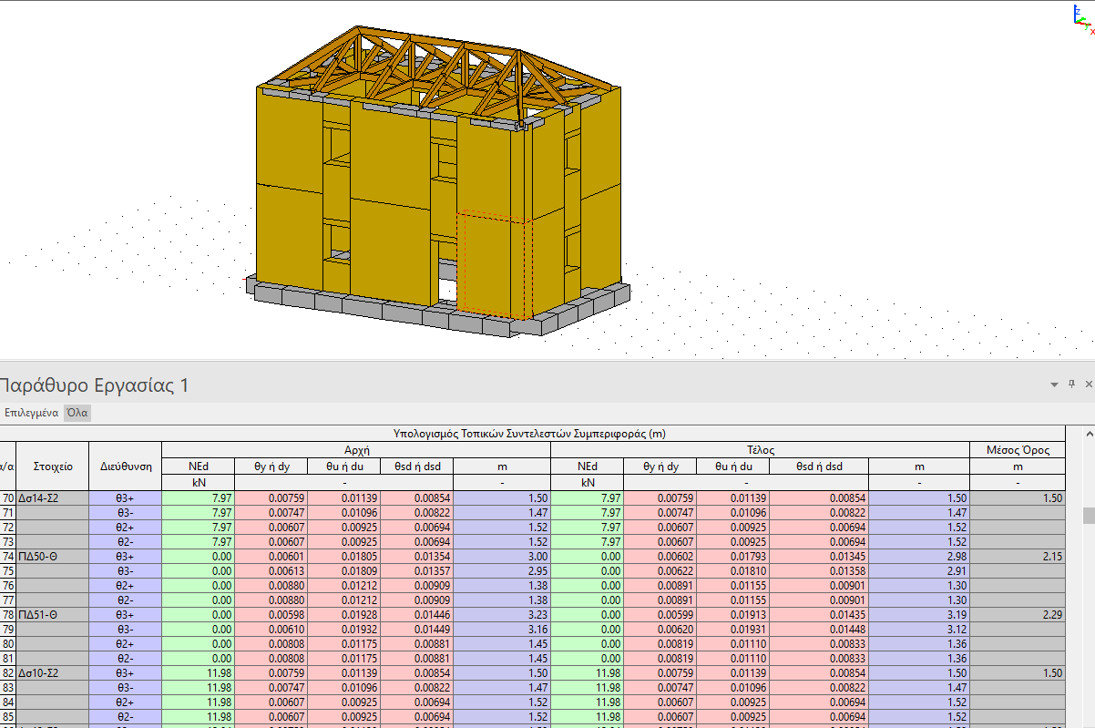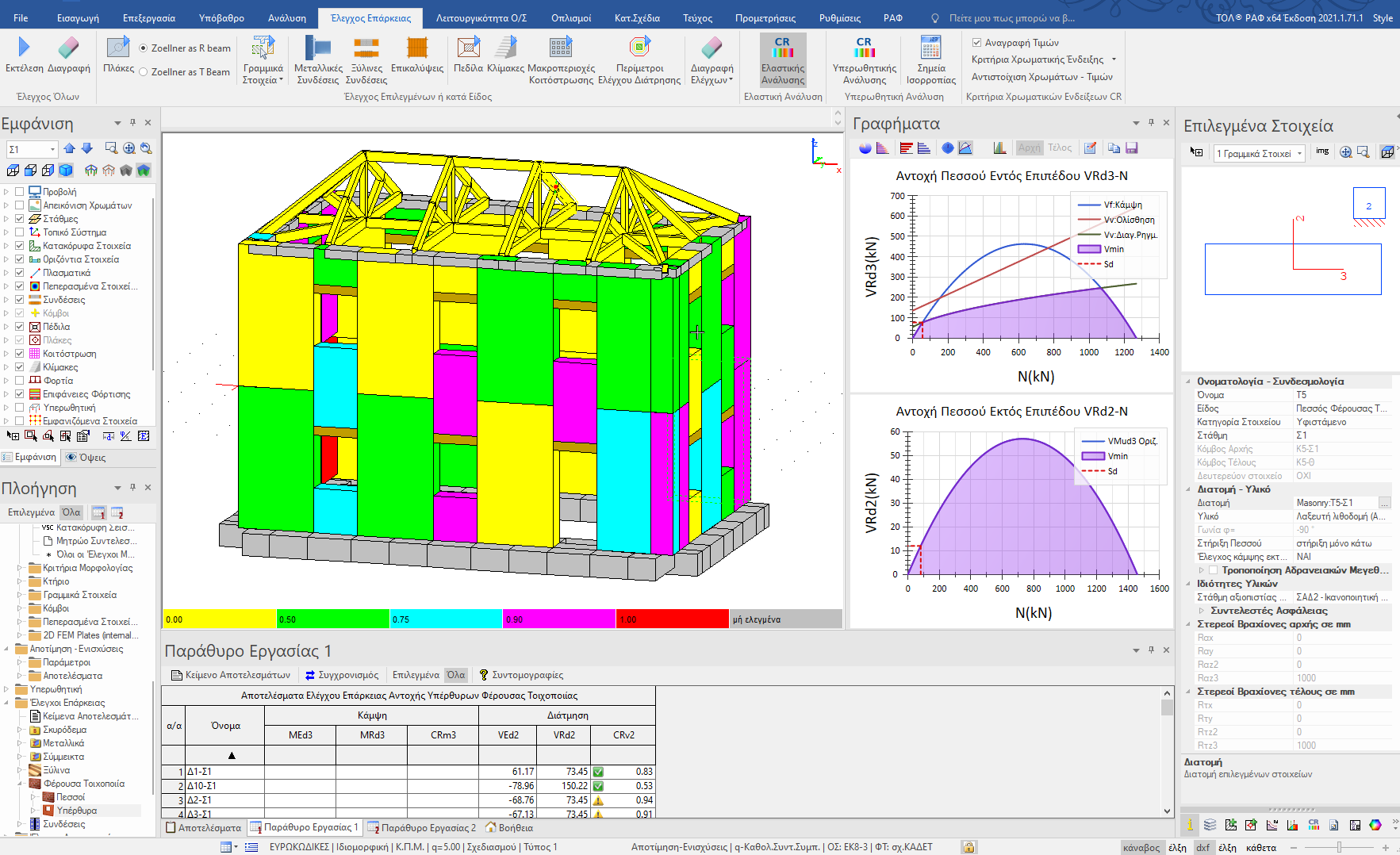 • Χρωματική απεικόνιση επάρκειας αντοχών σύμφωνα με το δυσμενέστερο λόγω εξάντλησης που προκύπτει από όλους τους ελέγχους αντοχής που πραγματοποιούνται σύμφωνα με τις διατάξεις των κανονισμού που έχει επιλεγεί.
