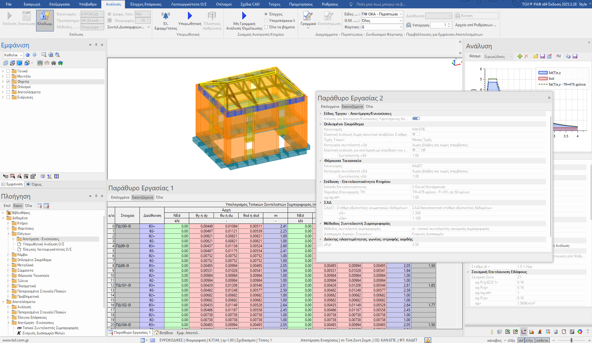 Η ελαστική δυναμική φασματική ανάλυση πραγματοποιείται στο ΡΑΦ για την αποτίμηση υφισταμένων κτηρίων σύμφωνα με τις προδιαγραφές του ΚΑΝ.ΕΠΕ. χωρίς κανένα περιορισμό στην εφαρμογή της.