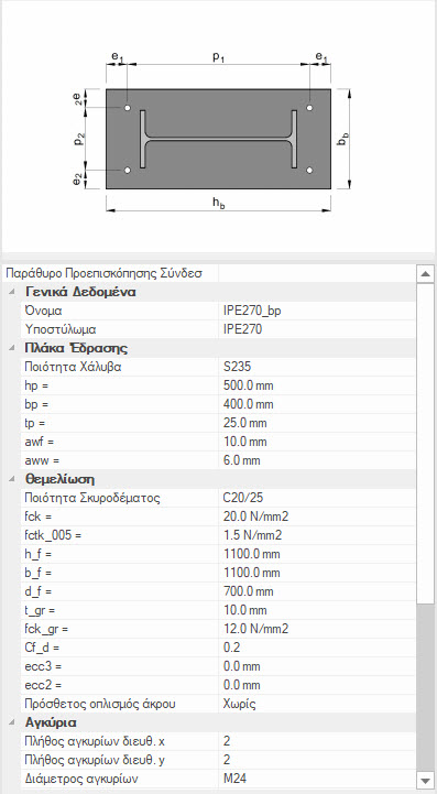 Για την έδραση των μεταλλικών υποστυλωμάτων, χρησιμοποιούνται πλάκες έδρασης με σύστημα αγκύρωσης (αγκύρια), όπου ο χρήστης μπορεί να ορίσει και να διαμορφώσει εύκολα μέσω βοηθητικών διαλόγων τη σύνδεση που επιθυμεί. Και αυτές οι συνδέσεις αντιμετωπίζονται ως βιβλιοθήκη έτσι ώστε να μπορούν να χρησιμοποιηθούν σε μελλοντικά έργα.