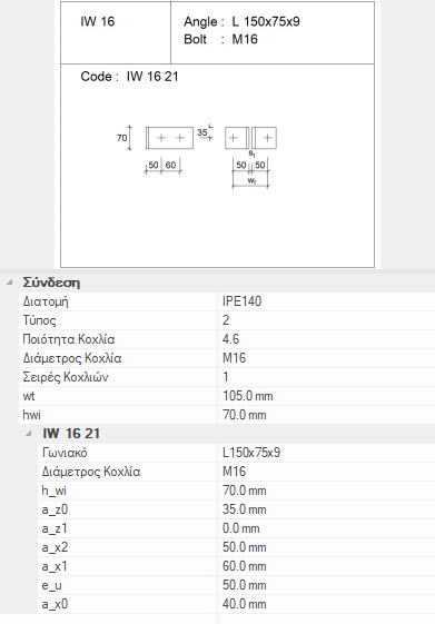 Οι διαγώνιοι σύνδεσμοι συνδέονται μέσω κοχλιών σε κομβοελάσματα τα οποία συγκολλούνται είτε απευθείας στις δοκούς, είτε συνηθέστερα στη μετωπική πλάκα της δοκού και στη δοκό. Και για αυτούς τους τύπους συνδέσεων, ο χρήστης μπορεί να διαμορφώσει εύκολα, μέσω βοηθητικών διαλόγων τη σύνδεση που επιθυμεί.