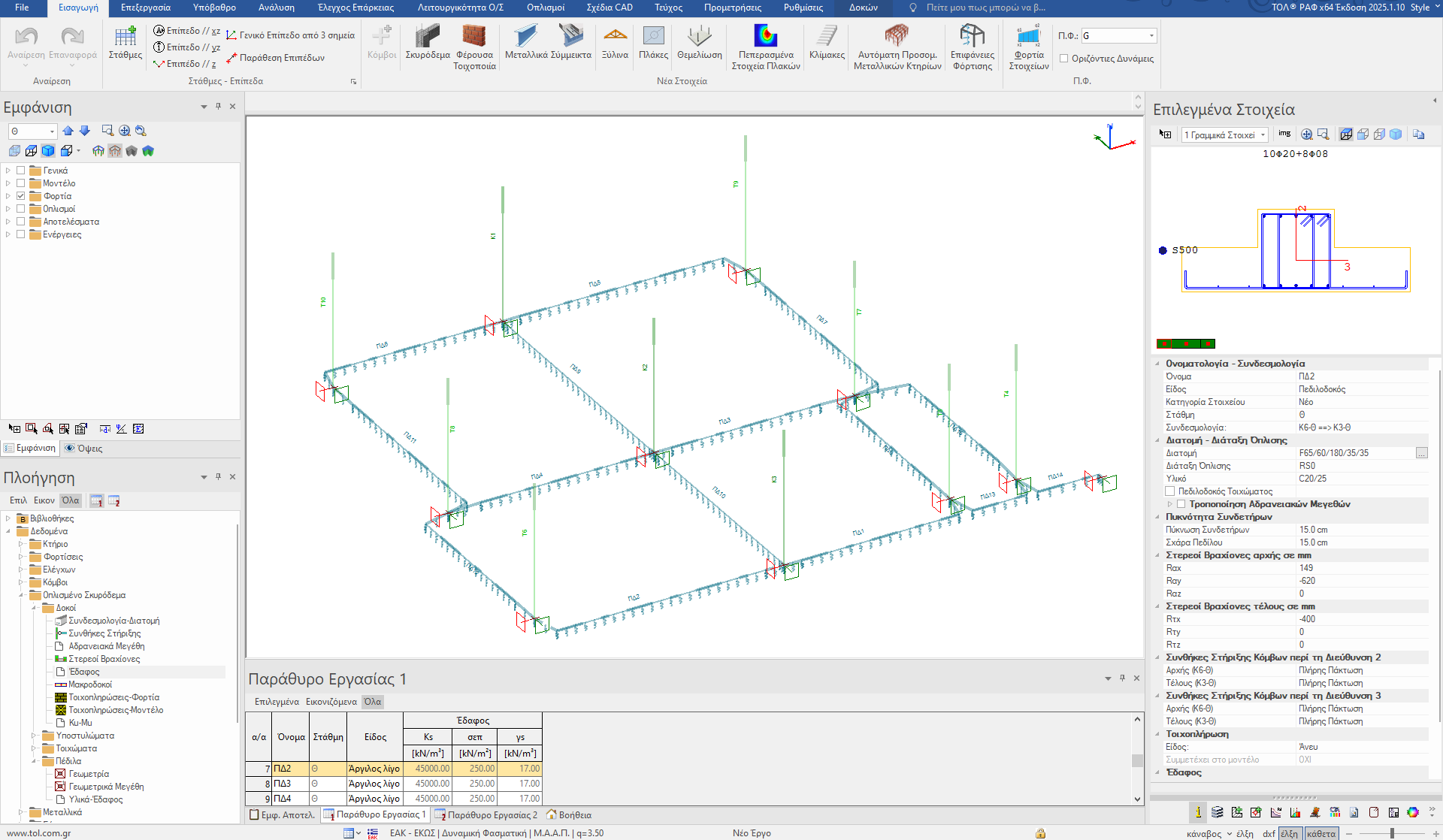 ⟰ / Πεδία Εφαρμογής / Είδη Υπολογισμών / Οι στατικές προσομοιώσεις του ΡΑΦ / Προσομοίωση των πεδιλοδοκών
