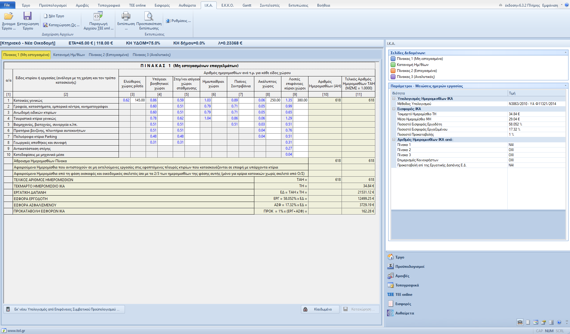 Αν πρόκειται για μεταλλικό κτίριο ή κτίριο που κατασκευάζεται από συνεργεία στεγασμένων επαγγελμάτων το πρόγραμμα συμπληρώνει τον πίνακα 2 του ΙΚΑ.