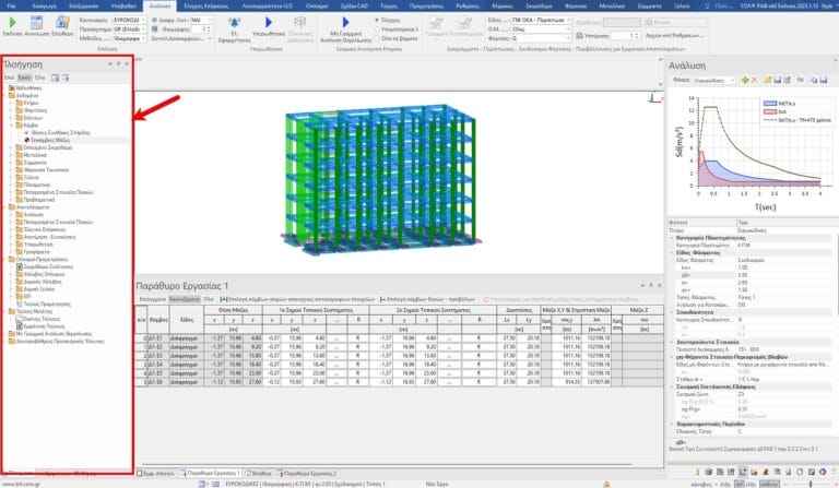 Με το «δέντρο» της πλοήγησης, ο μελετητής μπορεί να μεταβεί και να διαχειριστεί το σύνολο των δεδομένων ενός κτηρίου, τις παραμέτρους των αναλύσεων που πραγματοποιεί, αλλά και τα αποτελέσματα των