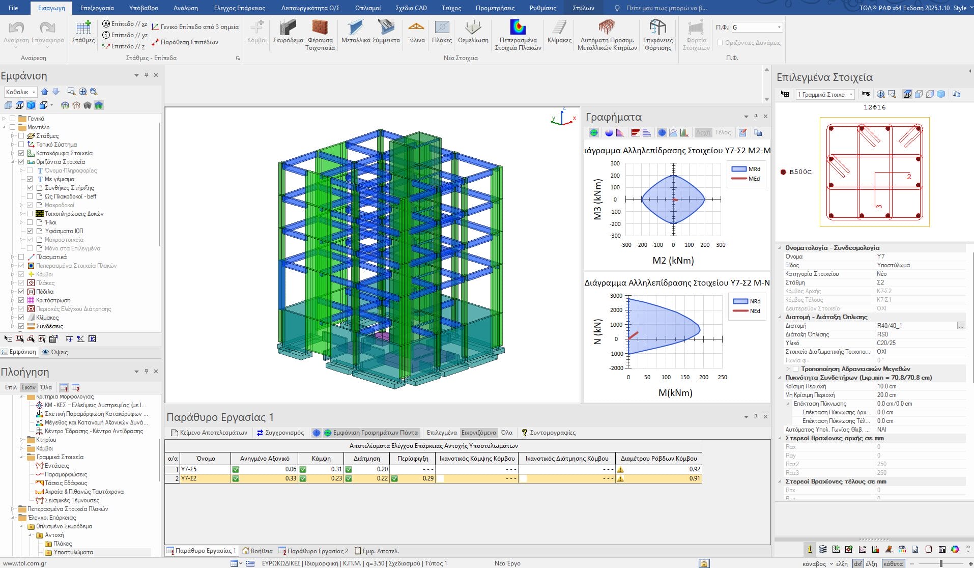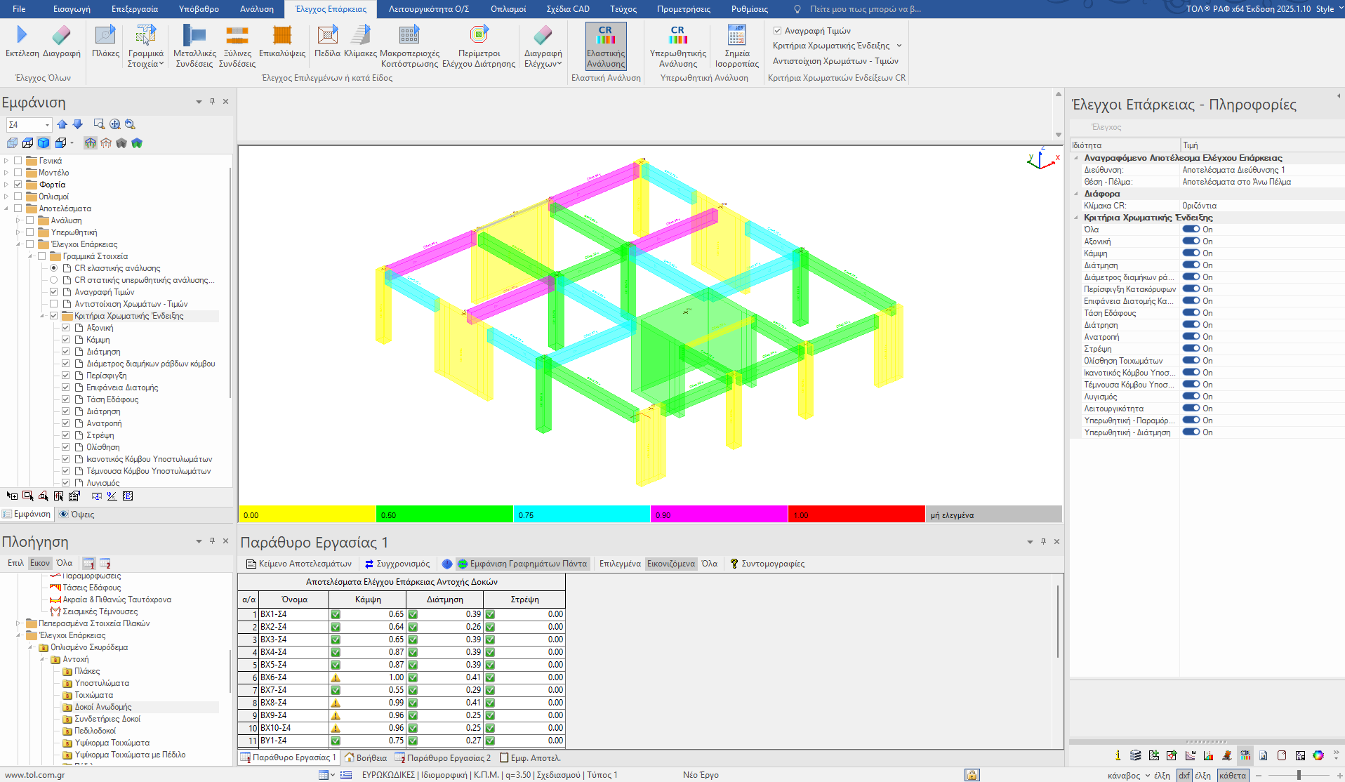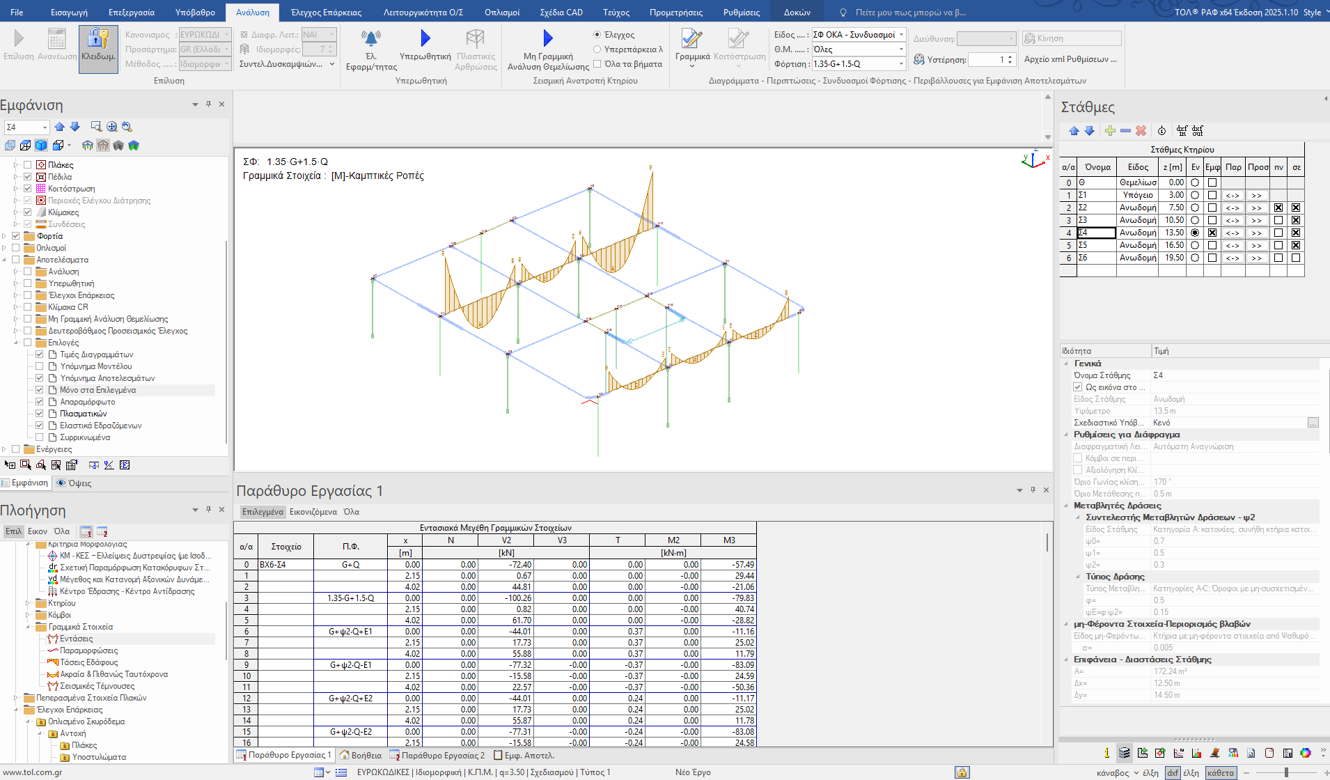 Μετά από την επίλυση ενός κτηρίου με θεμελίωση κοιτόστρωσης, το ΡΑΦ παρουσιάζει πληθώρα διαγραμμάτων αποτελεσμάτων.