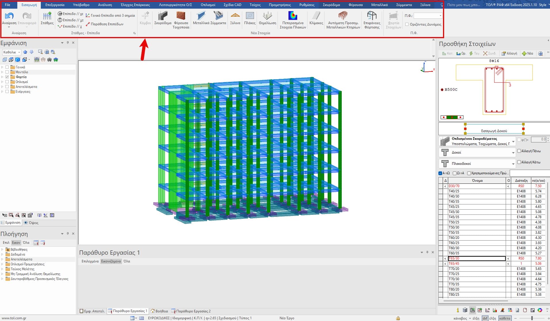 Με το «δέντρο» της πλοήγησης, ο μελετητής μπορεί να μεταβεί και να διαχειριστεί το σύνολο των δεδομένων ενός κτηρίου, τις παραμέτρους των αναλύσεων που πραγματοποιεί, αλλά και τα αποτελέσματα των
