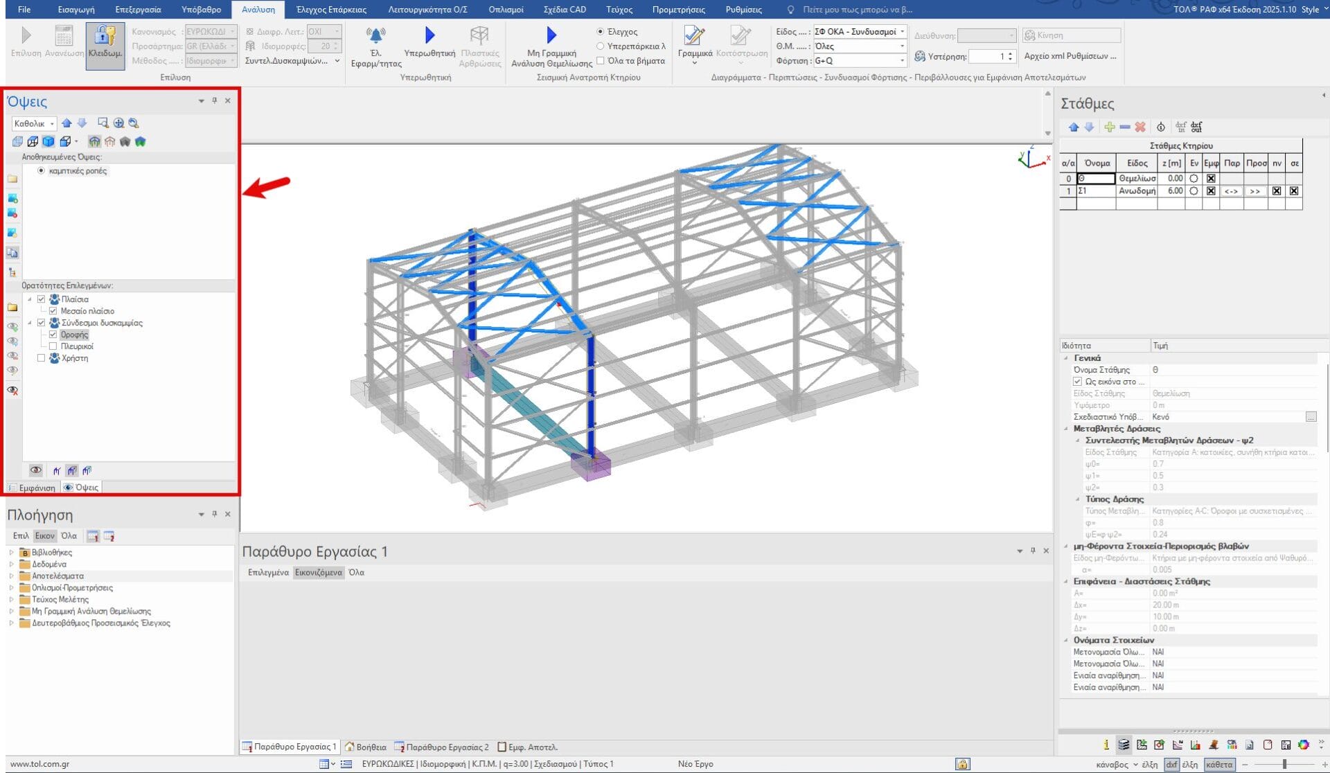 Πρόκειται για δύο εργαλεία που διευκολύνουν την αξιολόγηση των αποτελεσμάτων και παρέχουν επιλογές εμφάνισης στοιχείων βάσει συγκεκριμένων ιδιοτήτων που ορίζει ο μελετητής μηχανικός.