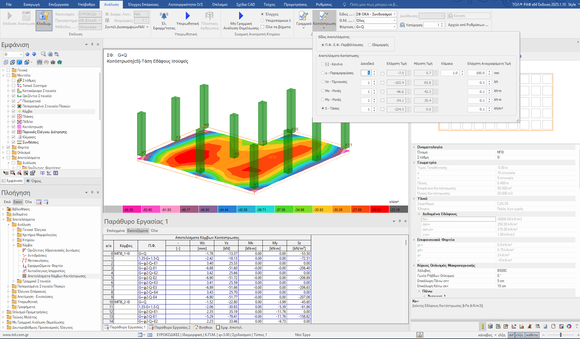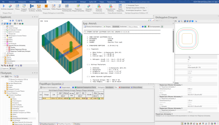 Μετά από την επίλυση ενός κτηρίου με θεμελίωση κοιτόστρωσης, το ΡΑΦ παρουσιάζει τα ακόλουθα διαγράμματα αποτελεσμάτων: