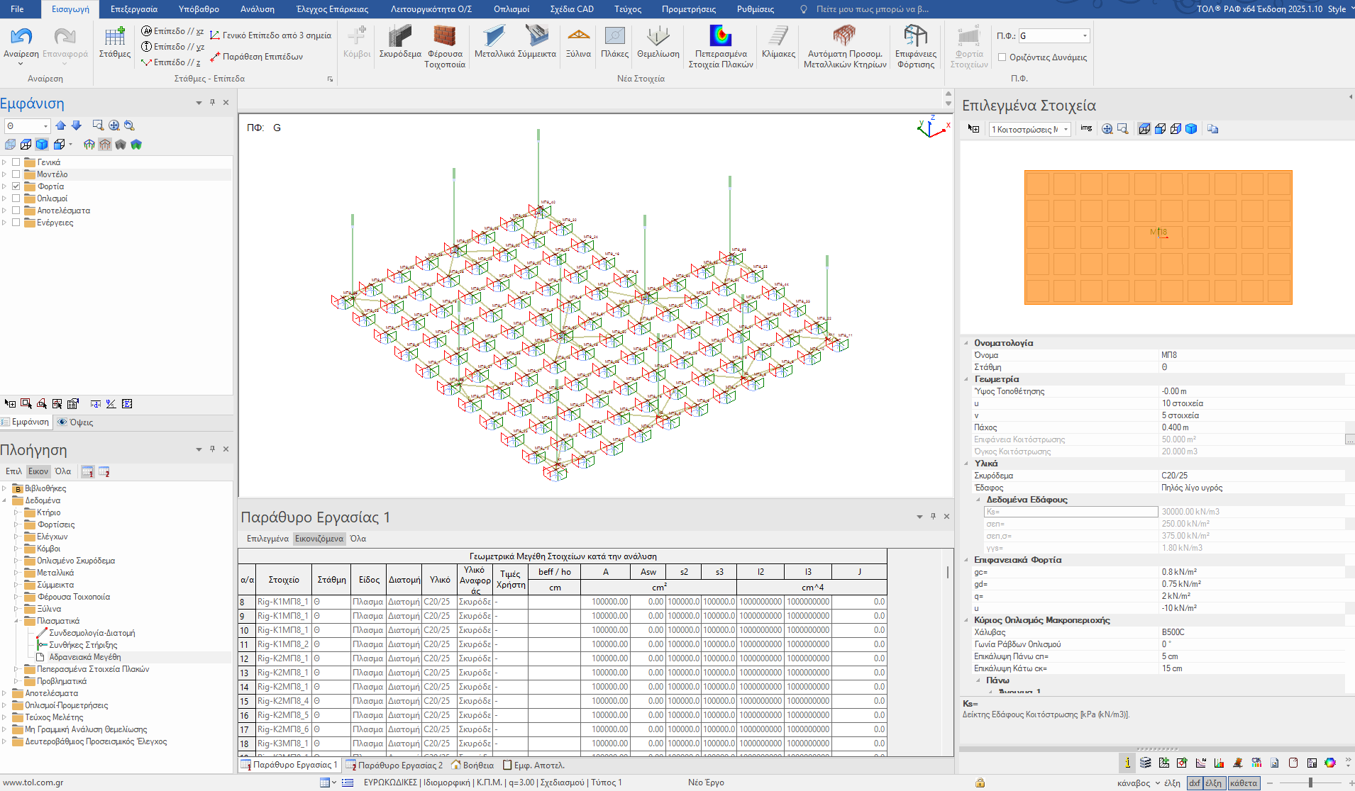 Μετά από την επίλυση ενός κτηρίου με θεμελίωση κοιτόστρωσης, το ΡΑΦ παρουσιάζει πληθώρα διαγραμμάτων αποτελεσμάτων.