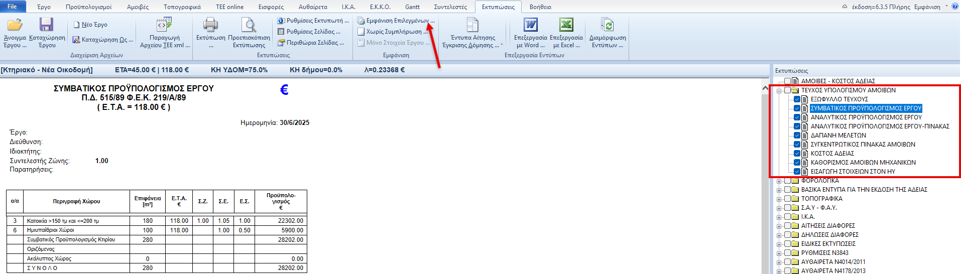 Στο φύλλο «Εκτυπώσεις» επιλέγουμε από το δέντρο των εκτυπώσεων το κουτάκι δίπλα από κάθε έντυπο το οποίο επιθυμούμε να τυπωθεί, στην συνέχεια πατάμε το πλήκτρο «Εμφάνιση Επιλεγμένων» και τέλος το πλήκτρο «Εκτύπωση».