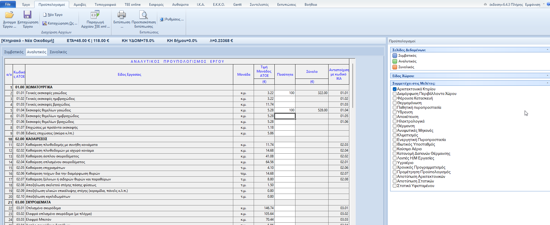 Προϋπολογισμός προκύπτει από τις εργασίες οι οποίες συμπεριλαμβάνονται στον κατάλογο εργασιών ΑΤΟΕ και έχουν τον αντίστοιχο κωδικό, ενώ ημερομίσθια προκύπτουν από τις εργασίες οι οποίες συμπεριλαμβάνονται στον κατάλογο εργασιών ΙΚΑ και έχουν τον αντίστοιχο κωδικό. Ανάλογα λοιπόν με το αν μια εργασία έχει κωδικό ΑΤΟΕ ή/και κωδικό ΙΚΑ εμφανίζει το πρόγραμμα προϋπολογισμό ή/και ημερομίσθια.