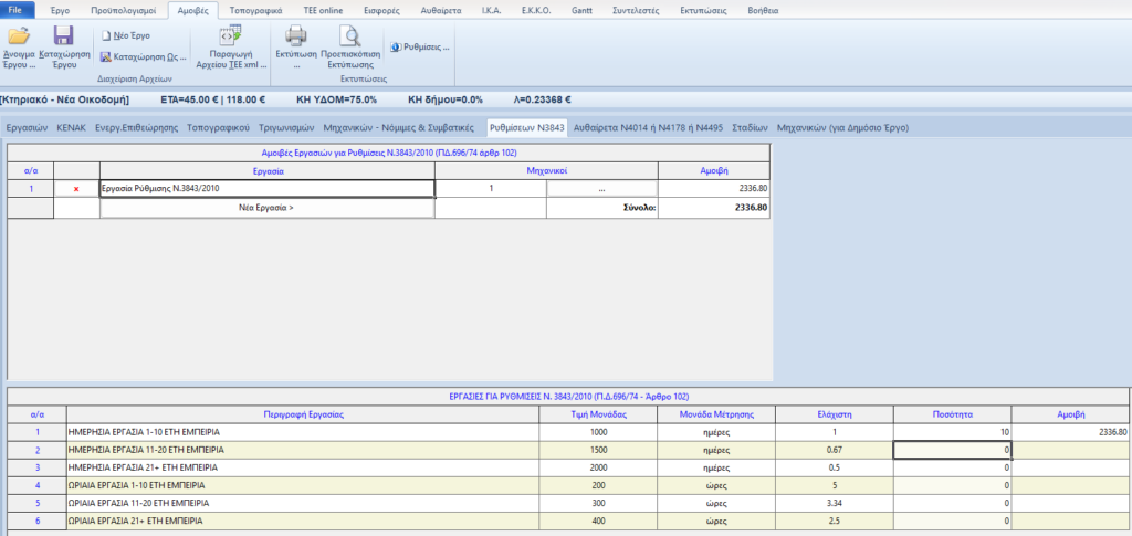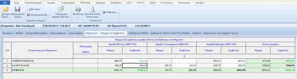 Στην σελίδα «Μηχανικών» του φύλλου «Αμοιβές» και στη στήλη «Αμιβή μελέτης ΦΕΜ 10%» και «Συμβατική» εισάγουμε το στρογγυλοποιημένο ποσό που […]