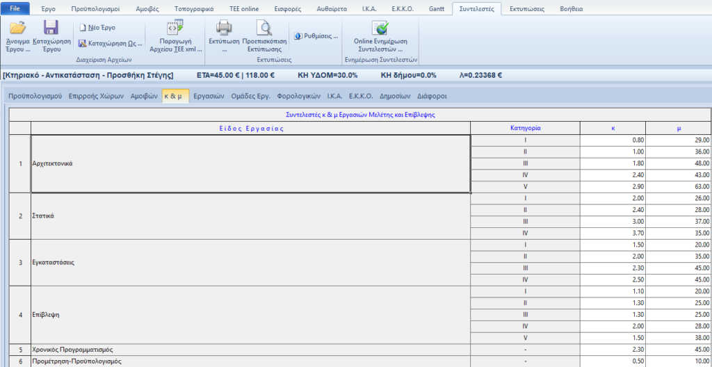 Η δυνατότητα που δίνει το πρόγραμμα για αλλαγή των συντελεστών κ και μ υπάρχει ΜΟΝΟ για την ενημέρωση των συντελεστών σε περίπτωση […]