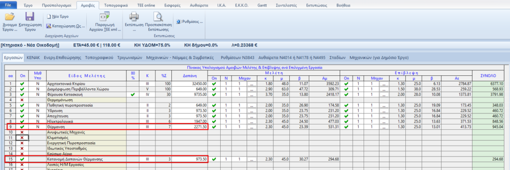 Το ΤΕΕ δίνει ένα αποτέλεσμα για Μελέτη Θέρμανσης και κατανομής Δαπανών ενώ το ΤΟΛ Αμοιβές χωριστά Μελέτη Θέρμανσης και Μελέτη […]