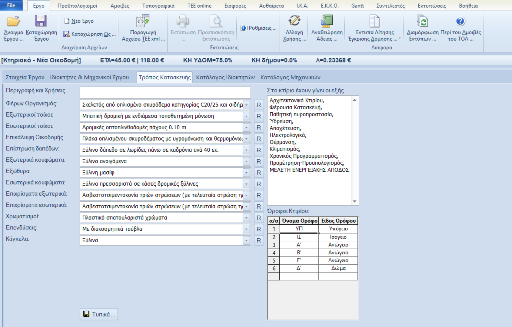 Στην σελίδα «Τρόπος Κατασκευής» του φύλλου «Έργο» μπορούμε να δώσουμε το πλήθος των ορόφων του κτιρίου, χαρακτηρίζοντας κάθε όροφο ως […]
