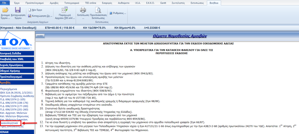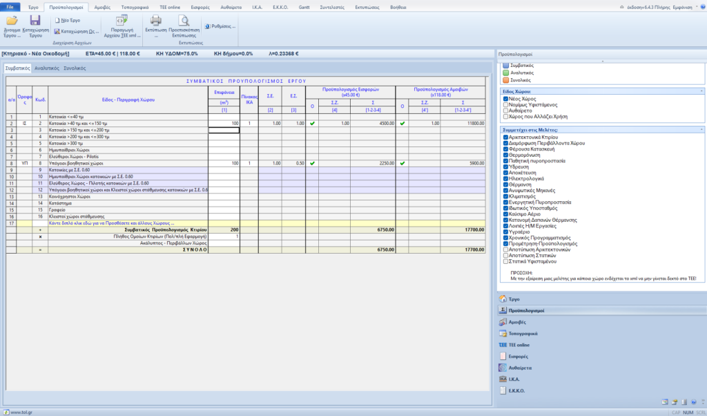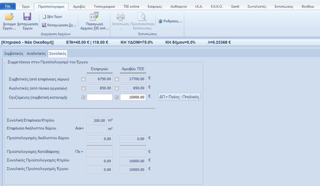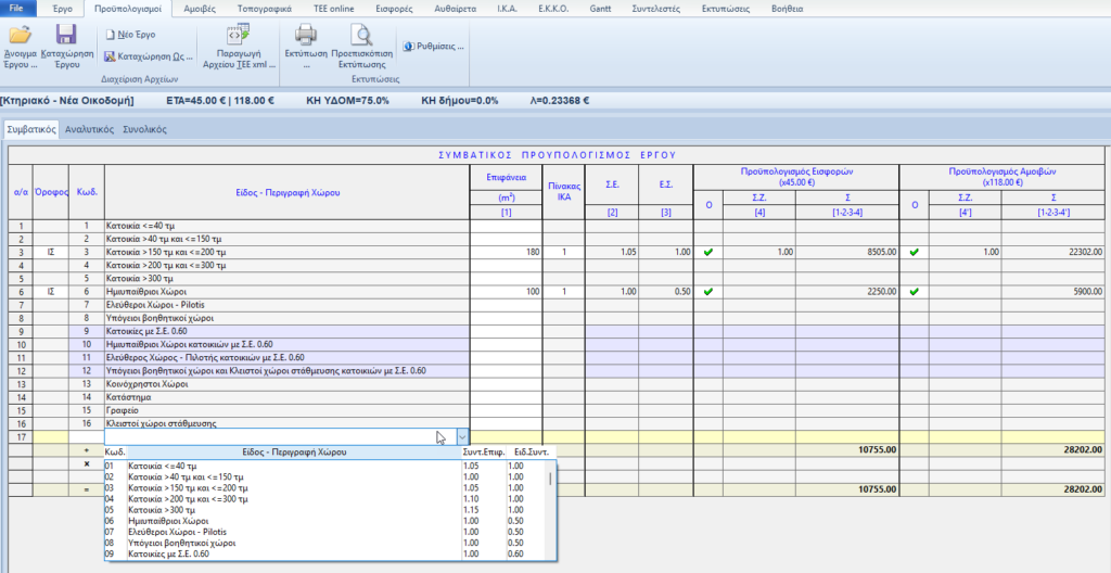 Στο φύλλο «Έργο» δηλώνουμε μόνο το είδος έργου που επηρεάζει τον τρόπο υπολογισμού των αμοιβών, δηλαδή Νέα Οικοδομή, Προσθήκη (προσαύξηση […]
