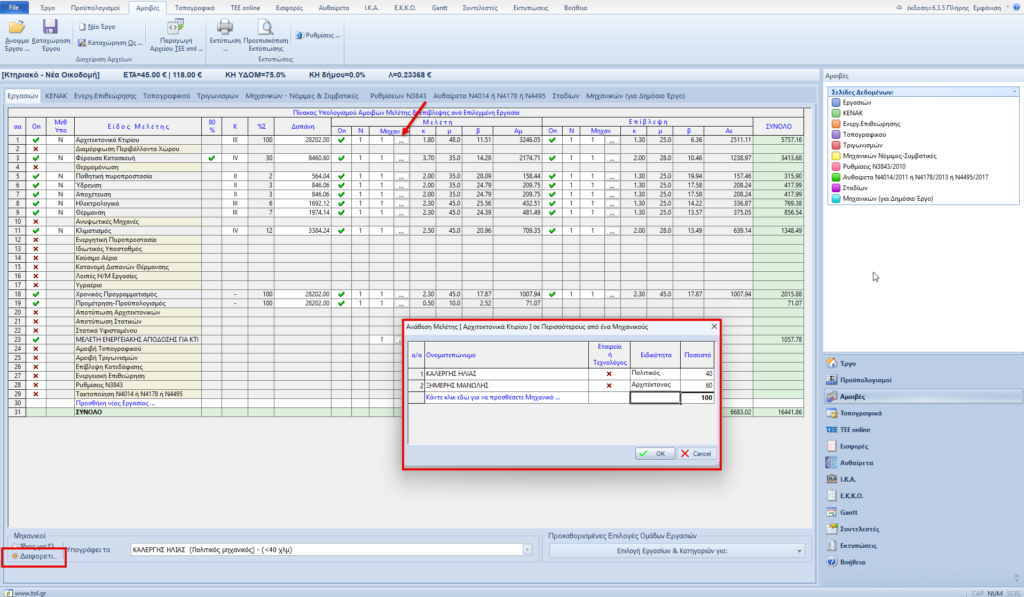Κατ’ αρχάς πρέπει στο φύλλο «Αμοιβές» και στην σελίδα «Εργασιών» να δηλώσουμε στο πεδίο «Μηχανικοί», στο κάτω μέρος της σελίδας, […]