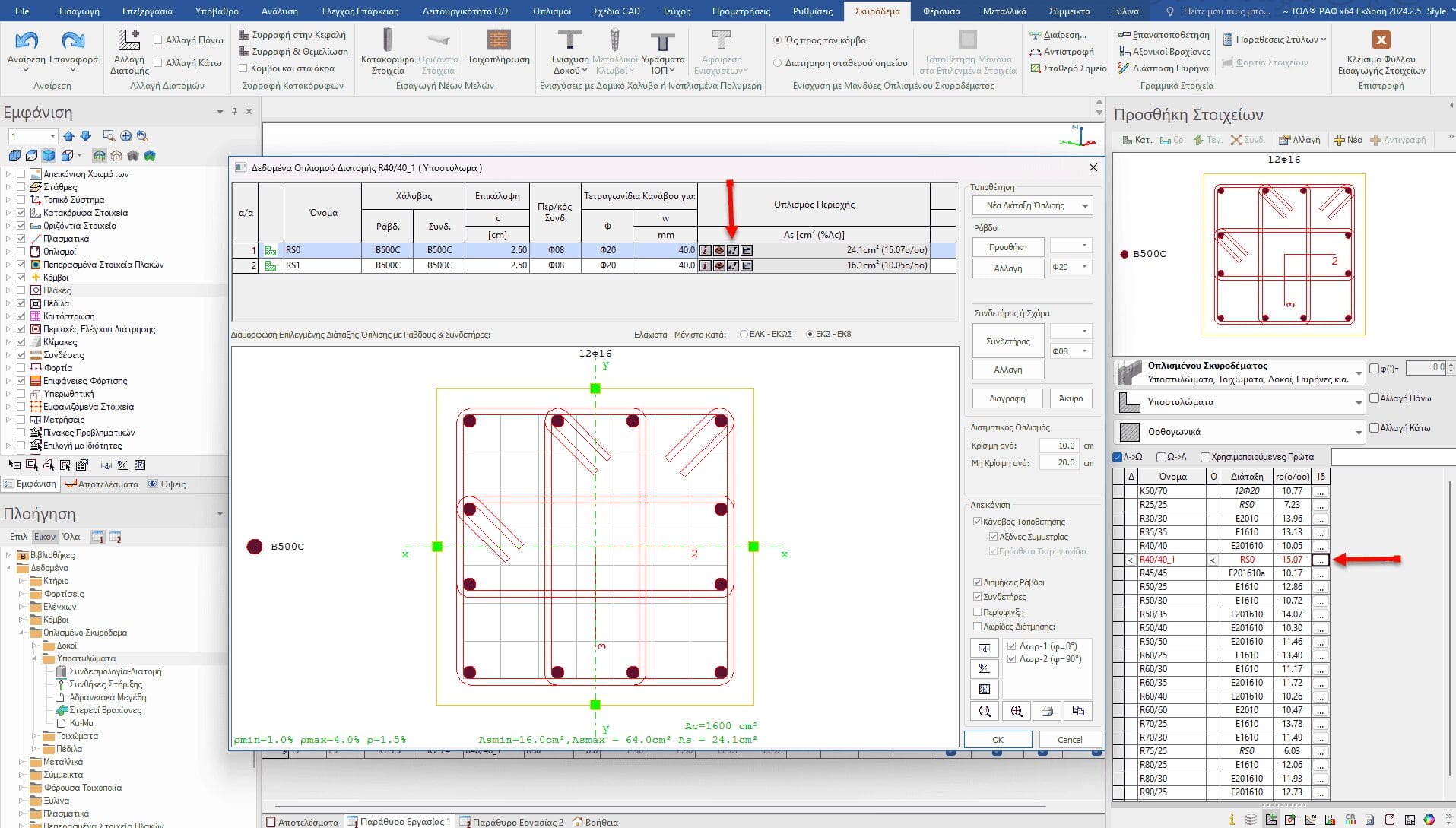 Για δεδομένη διάταξη οπλισμού υποστυλώματος μπορούμε να εμφανίσουμε τον έλεγχο σε διαξονική κάμψη, επιλέγοντας το σχετικό πλήκτρο.