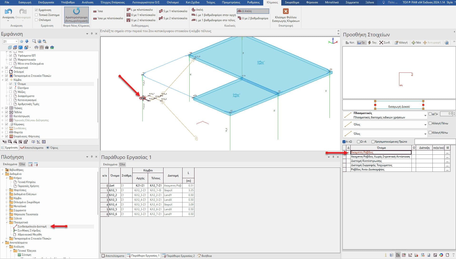 Η σύνδεση αυτή επιτυγχάνεται χρησιμοποιώντας πλασματικές διατομές τις οποίες μπορούμε να βρούμε στη βιβλιοθήκη του ΡΑΦ στη Δεξιά Πινακίδα Δεδομένων.