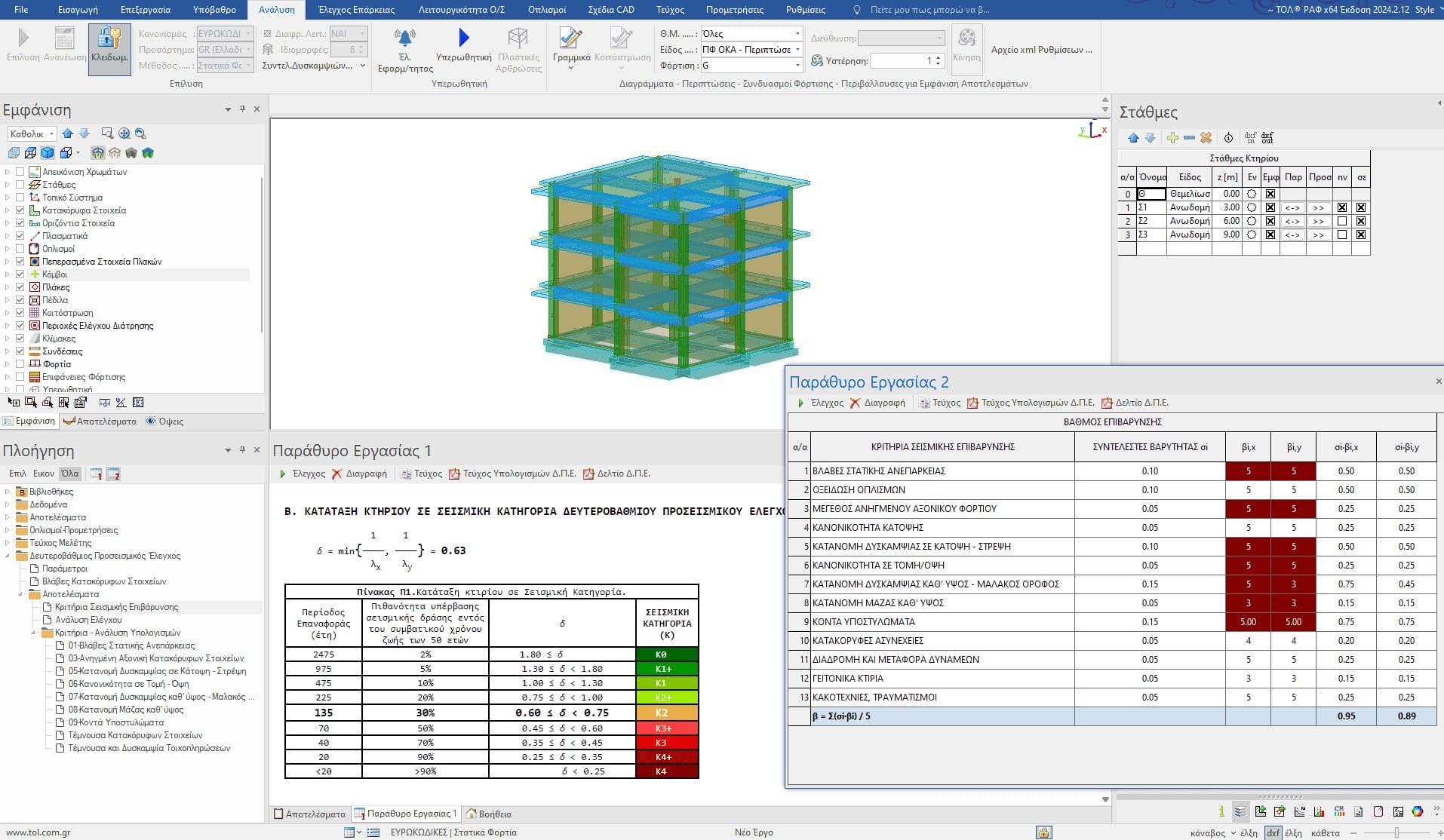 Σειρά έχει ο ορισμός των διάφορων παραμέτρων που αφορούν το Δευτεροβάθμιο Προσεισμικό έλεγχο. Περιγράφουμε τις βλάβες των κατακόρυφων μελών και των κόμβων και τέλος εκτελούμε την επίλυση ώστε κάθε κριτήριο να βαθμονομηθεί κατάλληλα και να υπολογιστεί τελικά ο δείκτης προτεραιότητας.